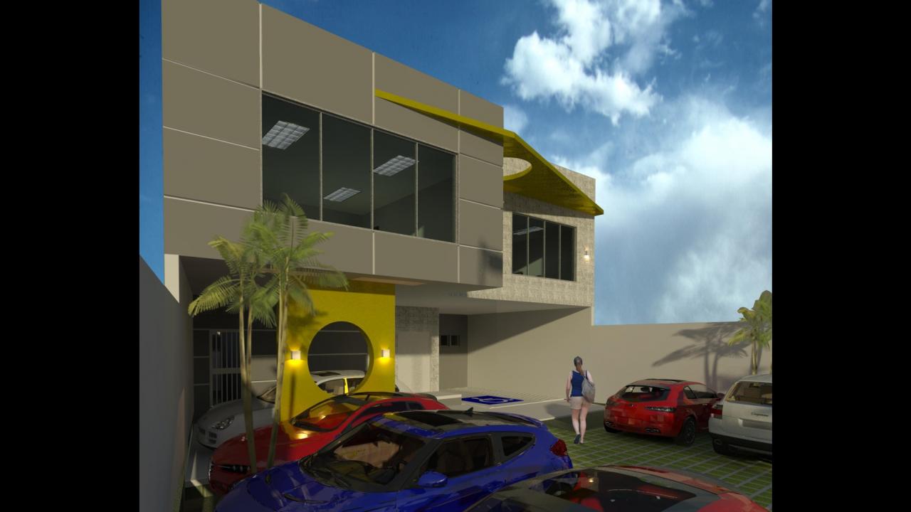 Um edifício comercial com salas para locação apresentando 433,10m² de área e uma fachada moderna, com detalhes em ACM amarelo. Projetos de arquitetura e engenharia - 2018