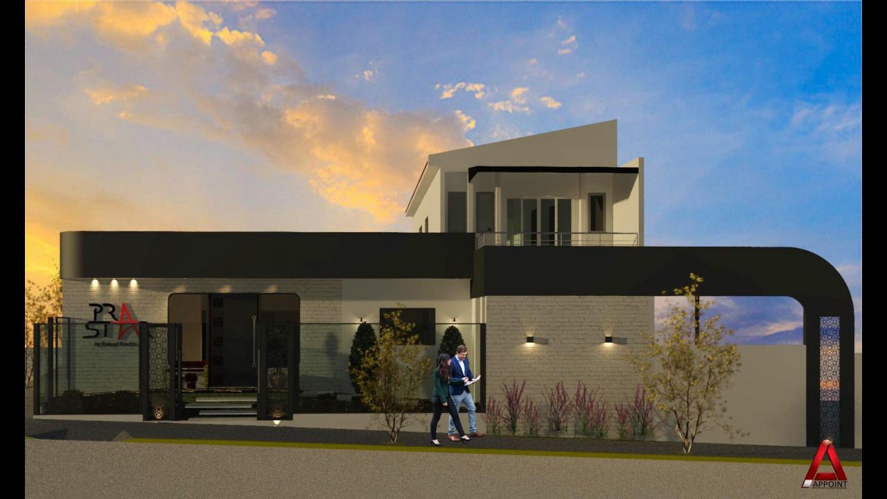 Uma casa que se transformou em uma produdora musical. O Pra Star consta com uma testeira em ACM para esconder o telhado existente, detalhes retrô através das curvas e uma calçada da fama na entrada. Projeto de arquitetura - 2020