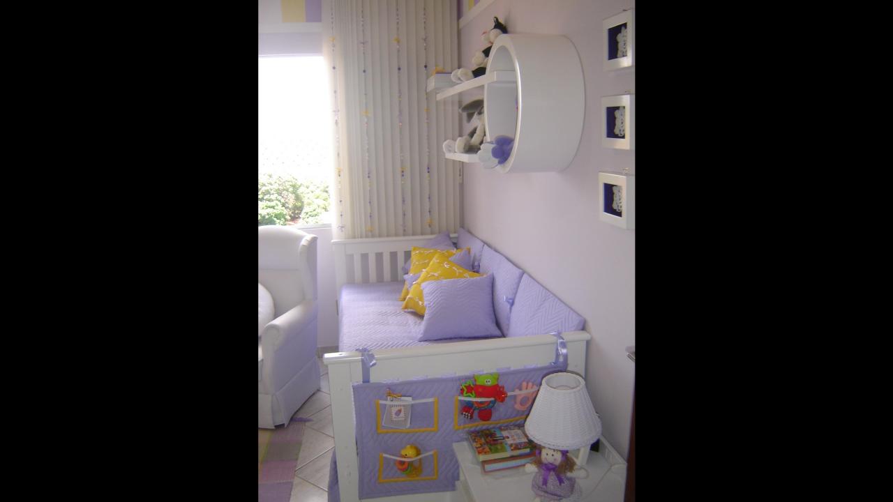 Quarto delicado em lilás e amarelo para um princesa a caminho. Projeto de interiores - 2008