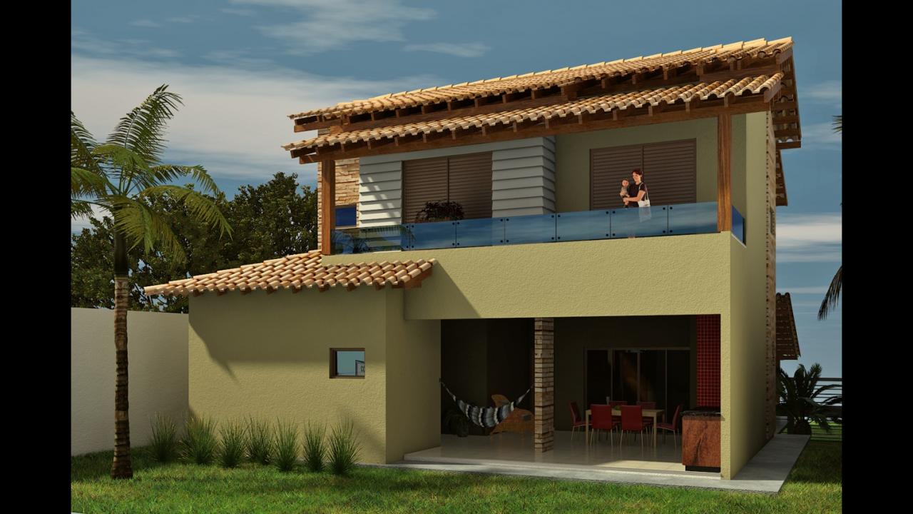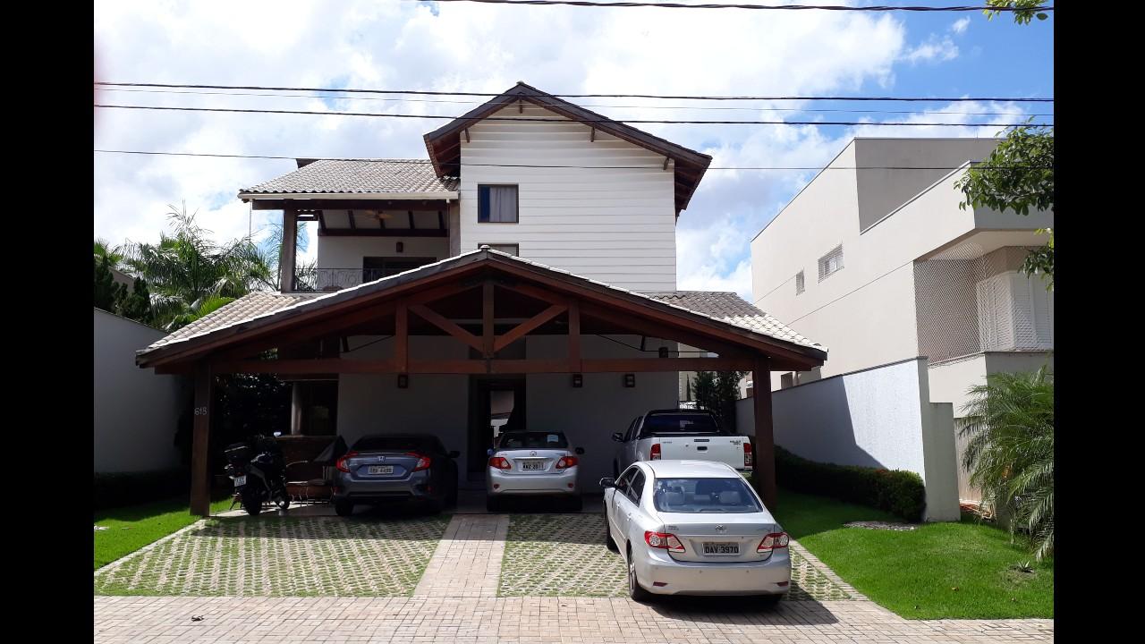 Sobrado para uma família com 3 integrantes no Condomínio Alhaville Cuiabá-MT com 328,02m² de área construída. Uma fachada com uma linda tesoura em madeira e detalhes em clapboard. Projeto de arquitetura, engenharia e acabamentos - 2008