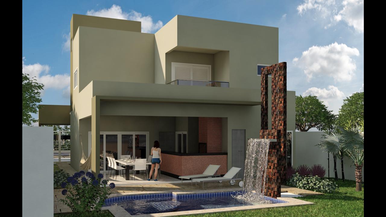 Projeto residencial de um sobrado para o Condomínio Belvedere, com 232,04m² de área. Casa com quatro dormitórios, sendo um no pavimento inferior para atender pessoas com necessidades especiais. Projetos de arquitetura e engenharia - 2013