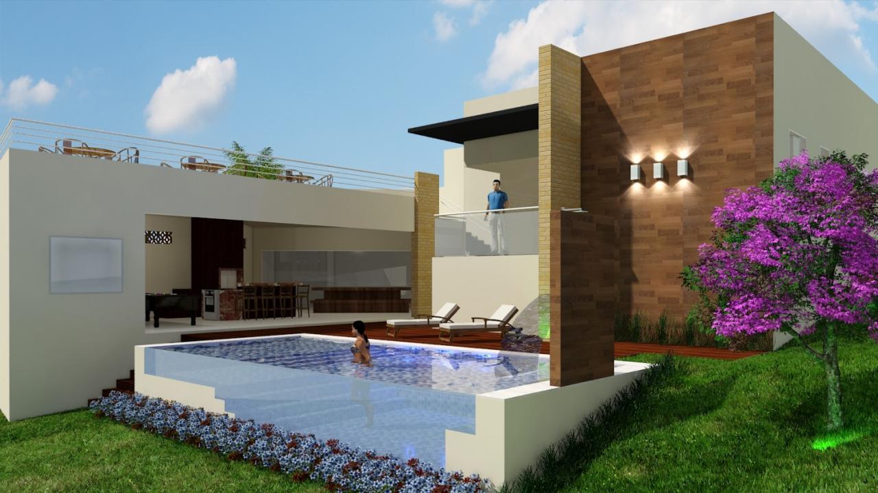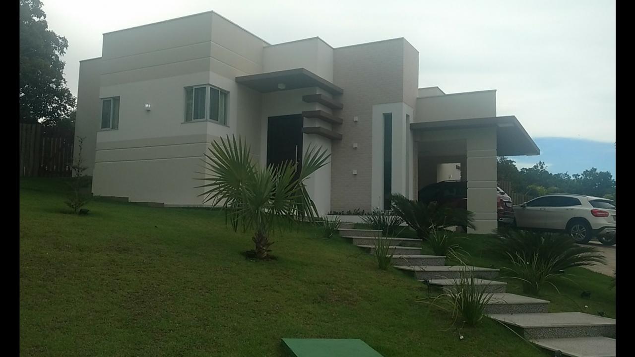 Uma casa toda em desníveis no Condomínio Terra Selvagem, acompanhando a inclinação natural do terreno, esta casa apresenta telhado escondido por platibanda, revestimento e cores que marcam a volumetria das fachadas. Área construída de 407,55m². Projetos de arquitetura e engenharia - 2014
