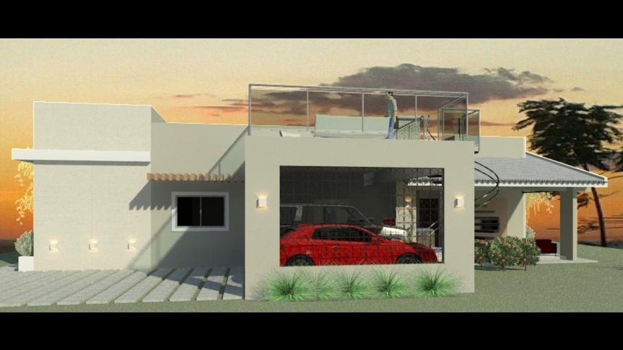 Uma casa elaborada para um condomínio rural com 174,49m² de área construída, com aproveitamento da laje para um terraço, onde a família pode aproveitar o por-do-sol. Projeto de arquitetura - 2017