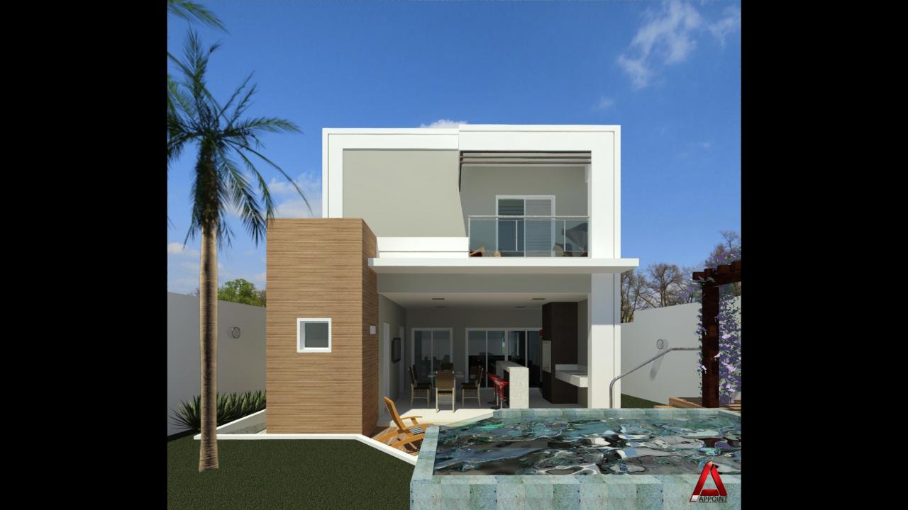 Sobrado no Condomínio Primor das Torres, apresenta 203,85m² de área construída. Uma fachada minimalista e clean e uma piscina com borda de vidro enobrecem este projeto. Projetos de arquitetura e engenharia - 2019