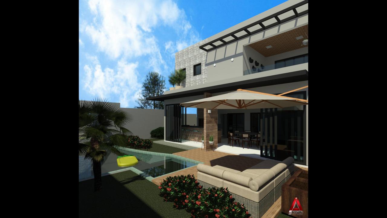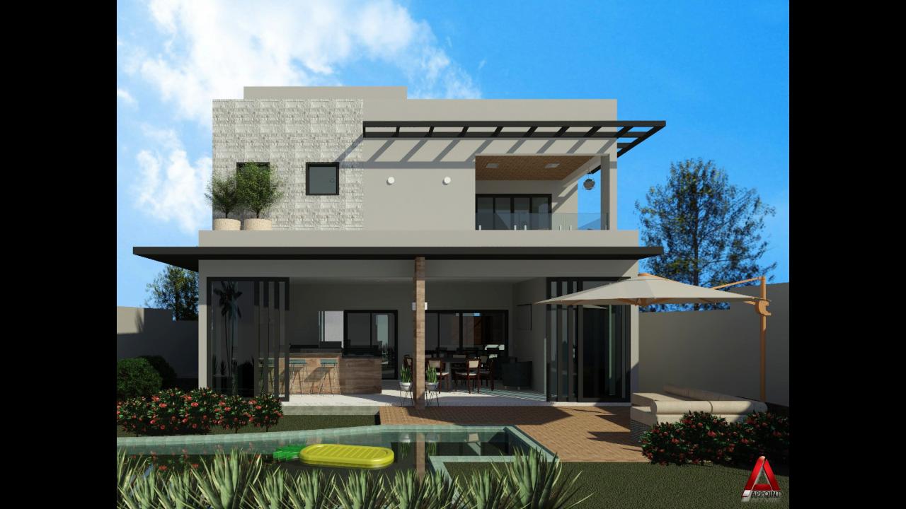 Uma casa com estilo projetada para o Condomínio Villa Jardim apresenta três pavimentos, sendo o subsolo para garagem, pavimento térreo para a área social e o pavimento superior para a área íntima da casa. Área construída de 390,92m² Projetos de arquitetura e engenharia - 2020