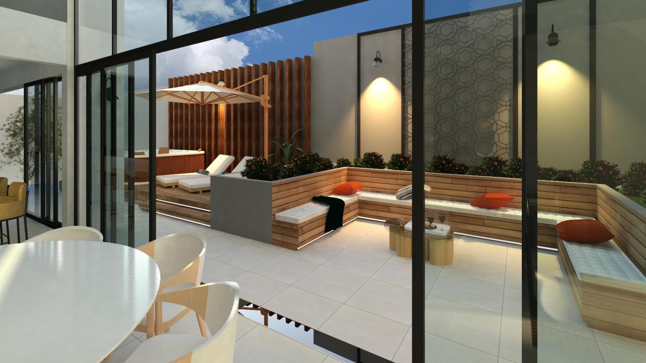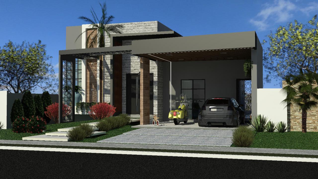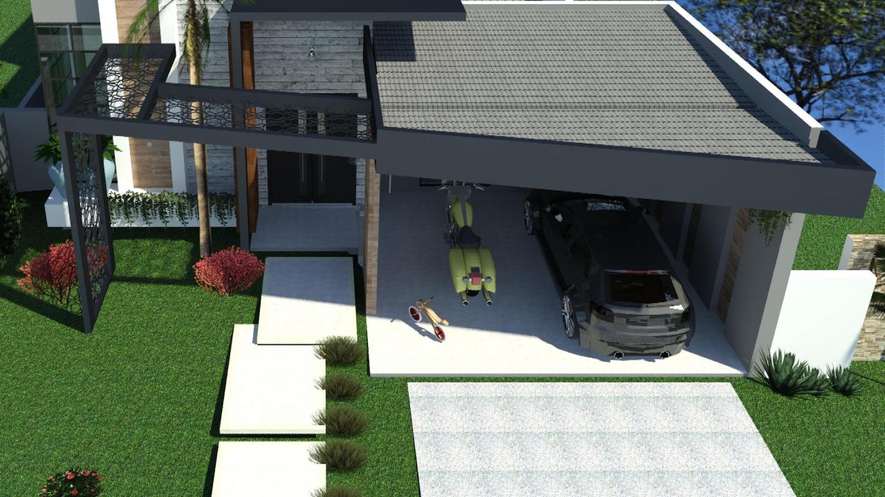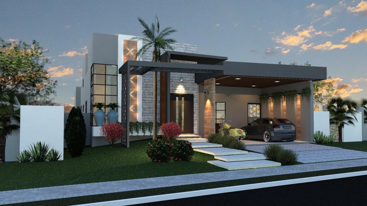 O aproveitamento da inclinação do lote foi o partido para a elaboração deste projeto, com aproveitamento da lateral para uma charmosa área de lazer. A volumetria e e a iluminação são os charmes desta casa projetada para o Condomínio Vila Jardim. Projetos de arquitetura e engenharia - 2021