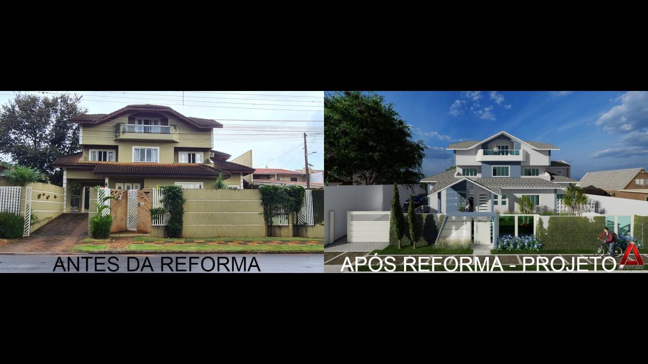 Um retrofit para uma residência em Arapoti-PR trazendo elegância para esta casa com reforma do telhado com colocação de telha tipo shingle e ampliação com acréscimo de um lindo espaço gourmet para receber os amigos, piscina coberta e aquecida, varanda frontal e dormitório para a filha no pavimento superior.