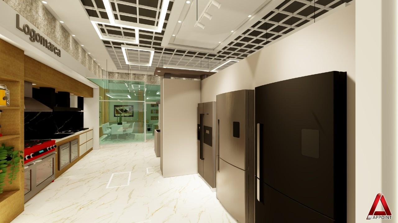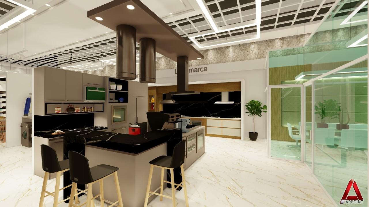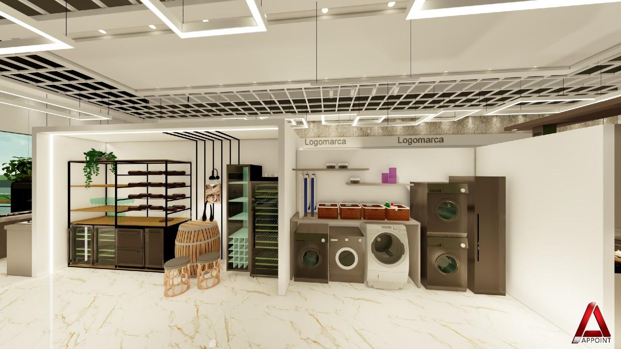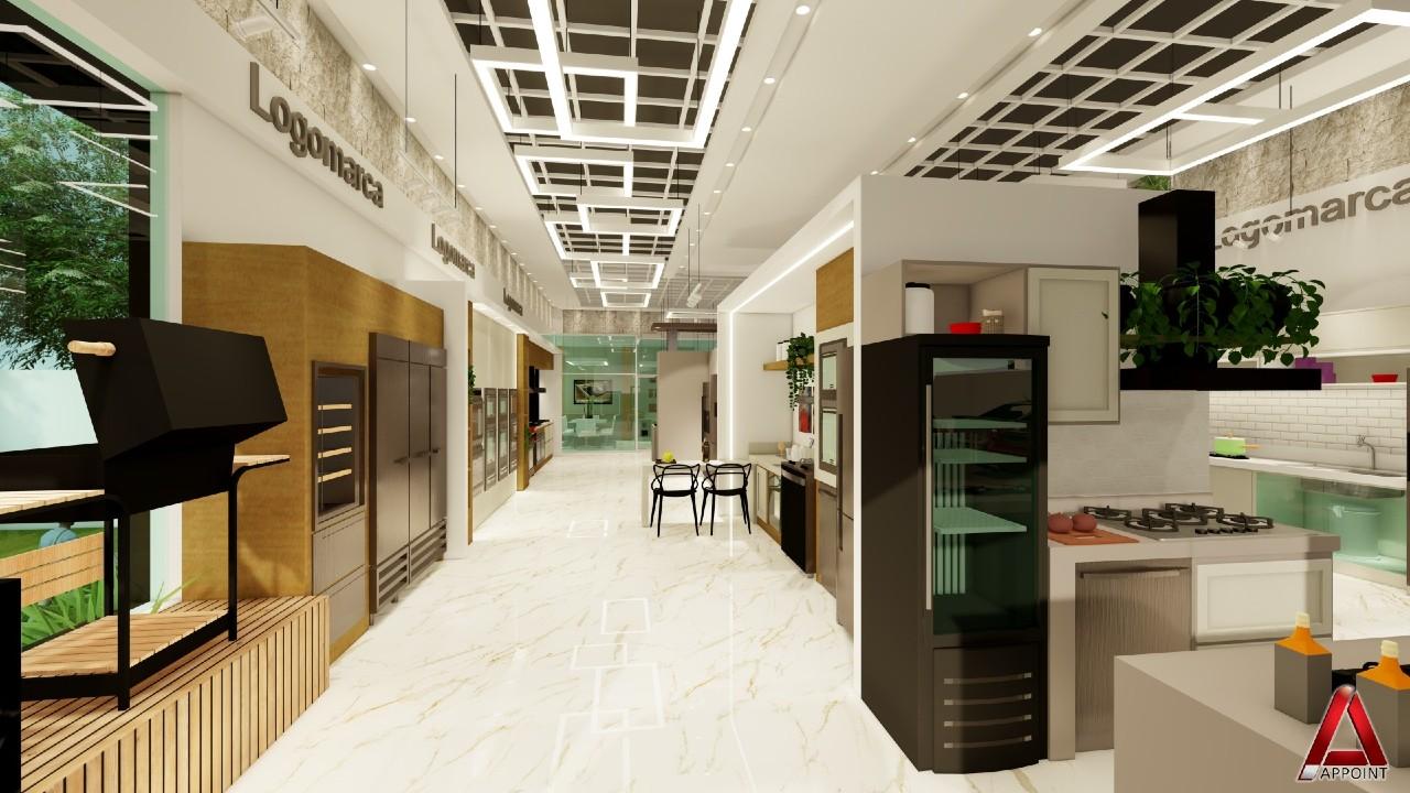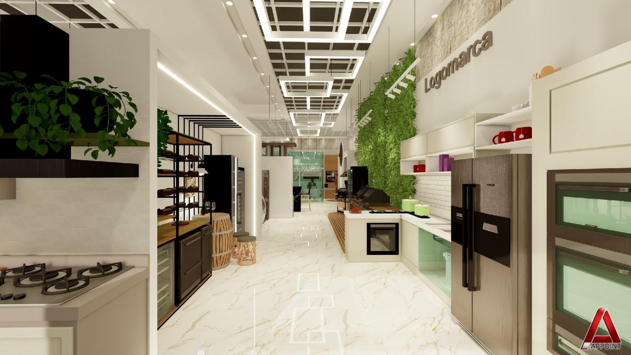 Projeto elaborado para a Luxury House, uma loja especializada em eletrodomésticos de luxo para a cidade de Curitiba-PR. Com área quadrada de 237,52m² o projeto foi trabalhado com detalhes de forro de gesso e estrutura metálica aparente, mobiliário modular, permitindo futuras trocas de showroom e destaques de iluminação para os produtos. Projeto de Arquitetura - 2022