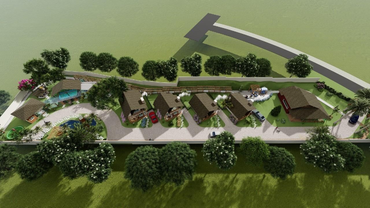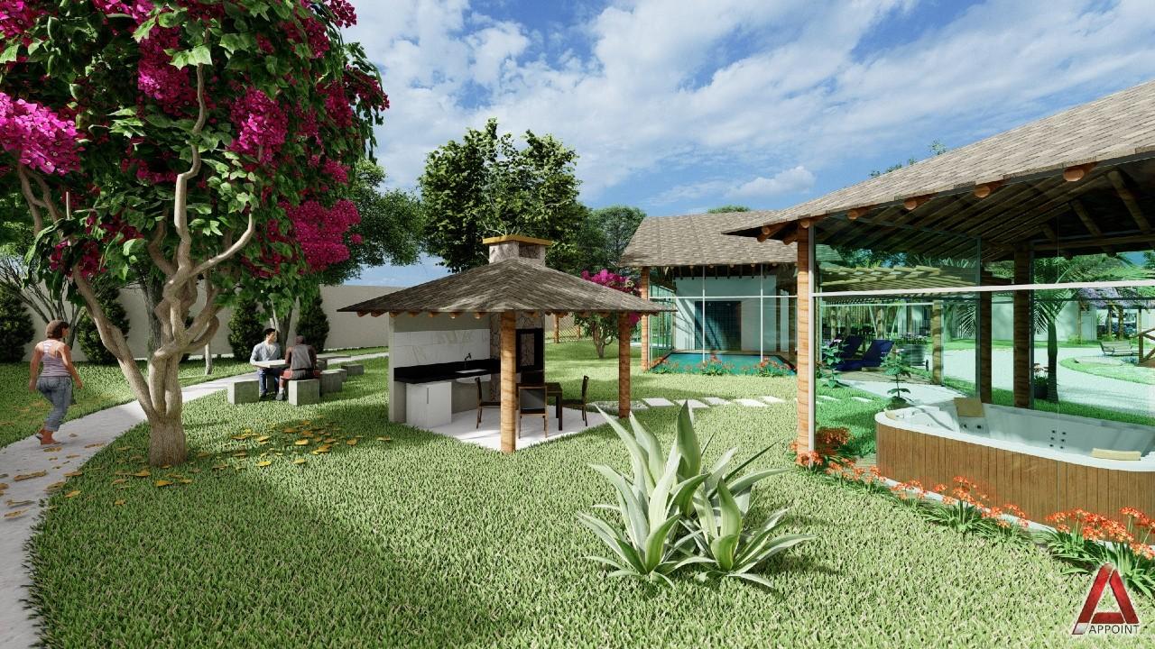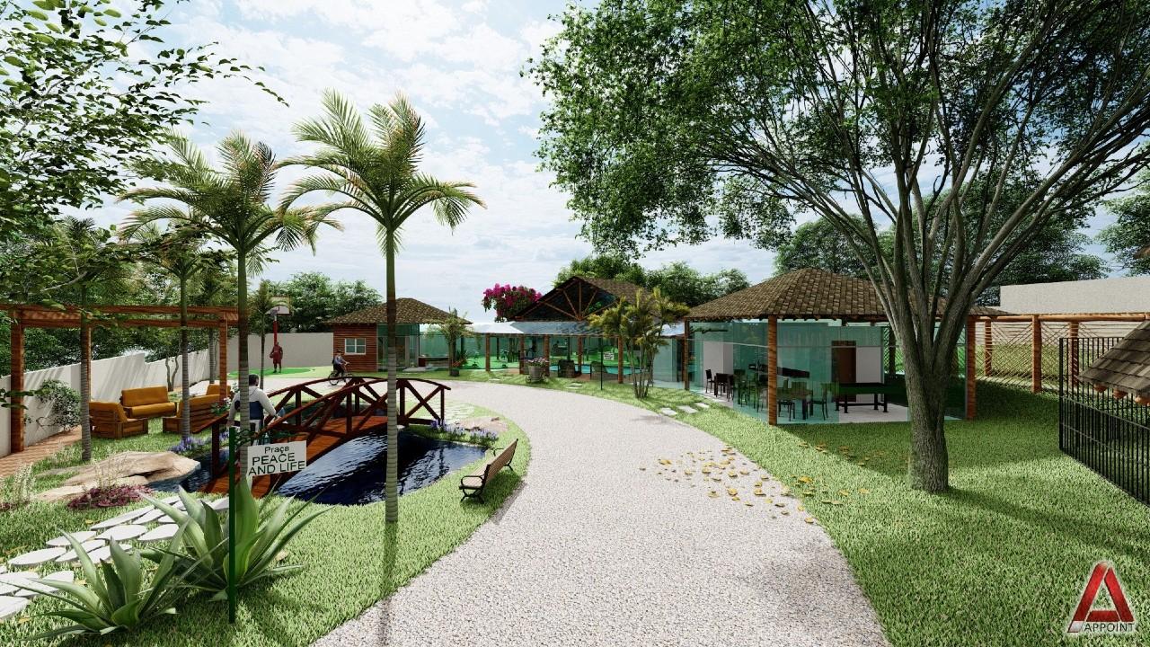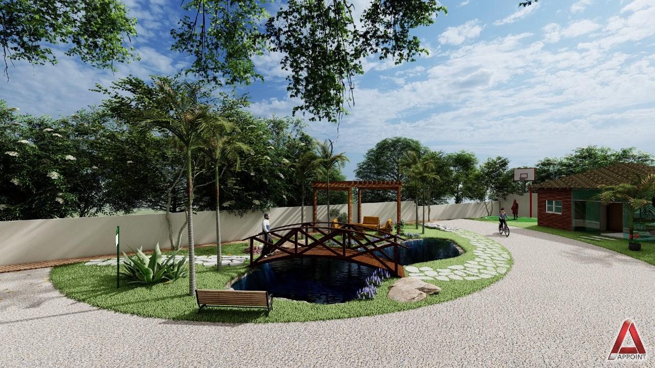 Um charme de pousada. Projeto para São José dos Pinhais-PR com 4 bangalôs, espaço gastronomia, duas praças deliciosas e área de lazer com piscina coberta, spa, sala de massagem, quiosque com churrasqueira, pista de caminhada, lago, cesta de basquete e muito paisagismo. Projeto de arquitetura - 2022