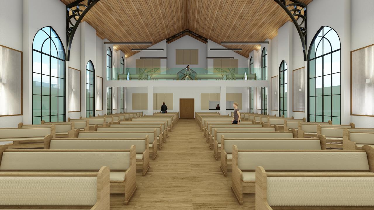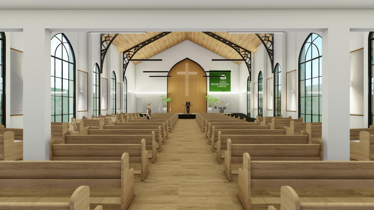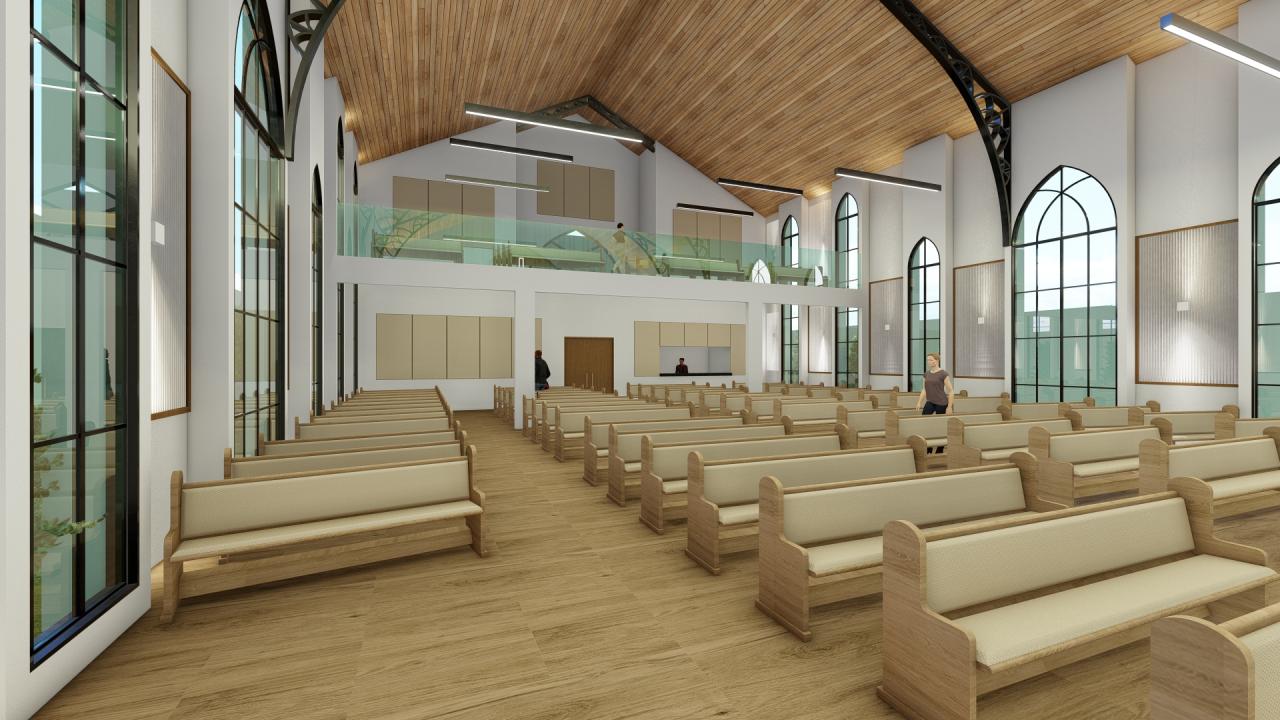 Projeto de Tratamento Acústico interno, permitindo qualidade na comunicação cantada e falada da igreja. Projeto arquitetônico de autoria de outro profissional.