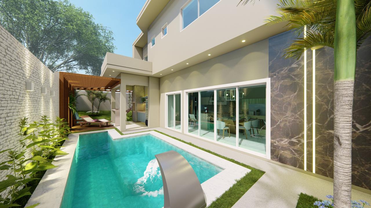 Uma residência linda com 224,00m² projetada para o Cond. Florais Safira, em Cuiabá-MT. Projetos de Arquitetura, Engenharia, acabamentos e marcenaria - 2024/2025