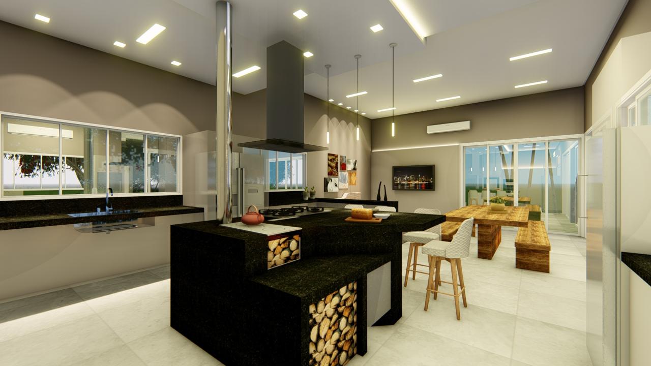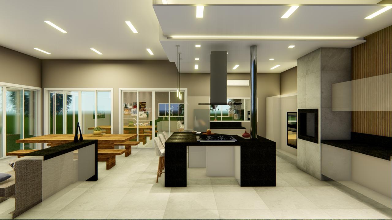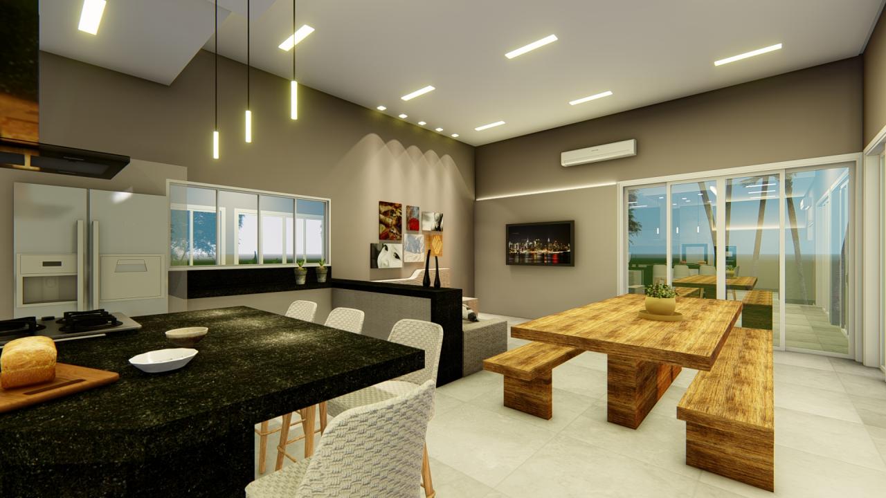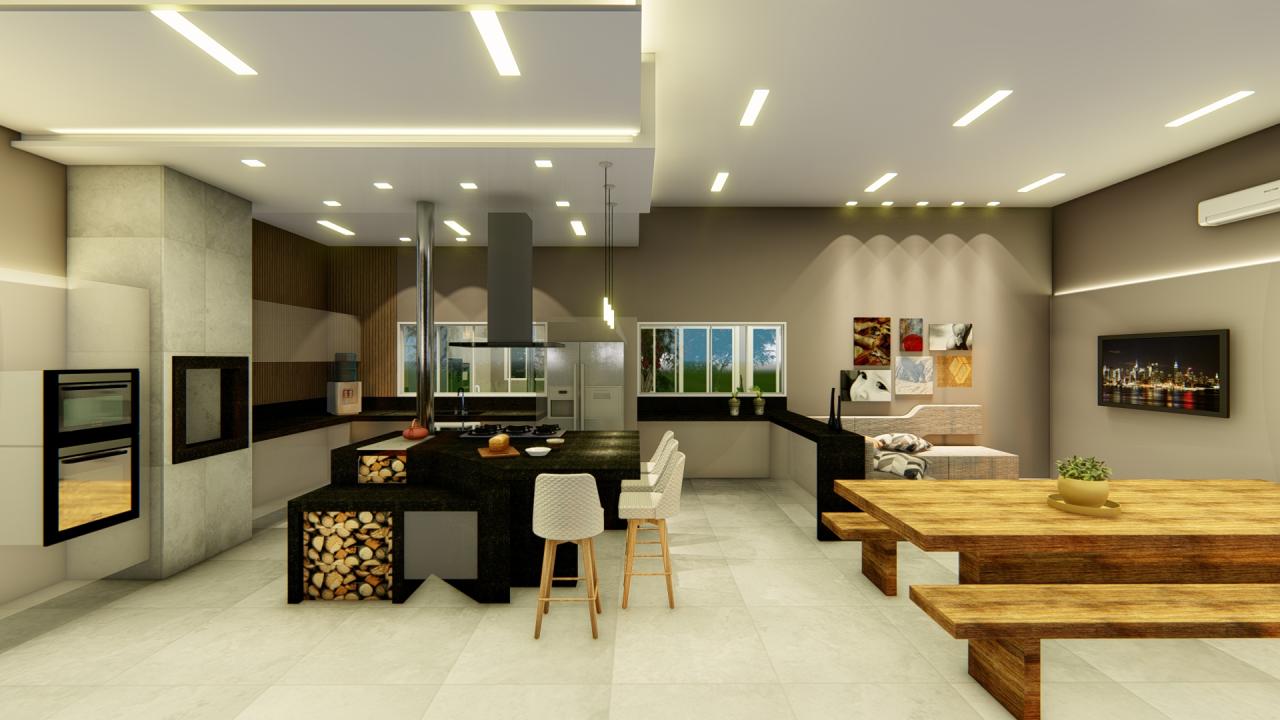 Criação de layout de um espaço gourmet localizado em uma casa de chácara no Mato Grosso. Projeto de Arquitetura de Interiores - 2024
