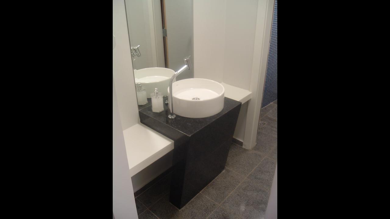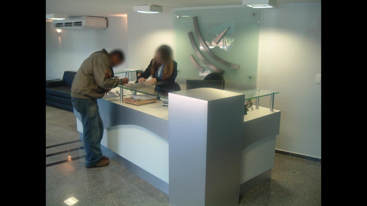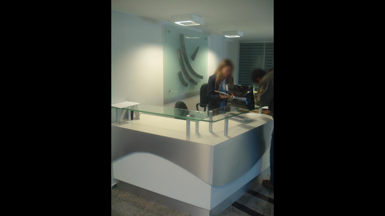 Reforma da recepção da matriz da empresa Autotrac e pórtico de acesso, uma empresa de tecnologia que necessitava de uma entrada charmosa e moderna. Projeto de interiores - 2007