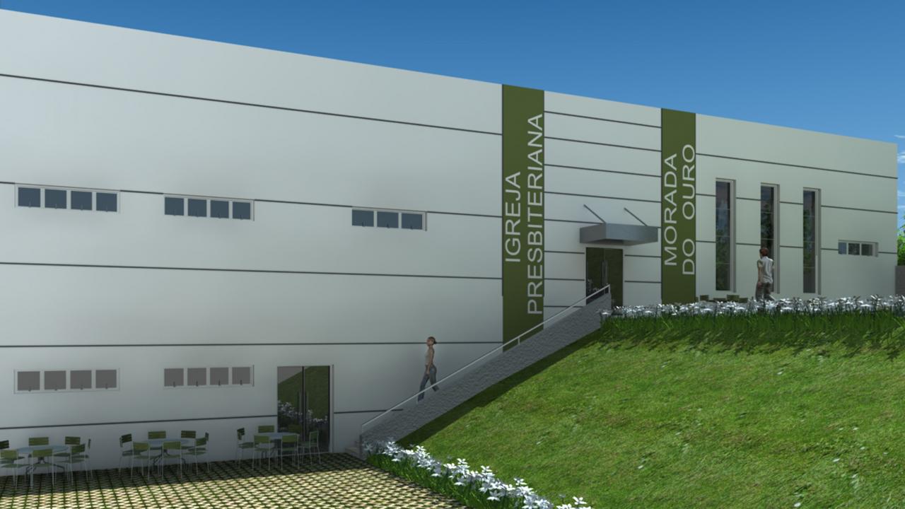 Estudo de fachada para galpão existente da Igreja Presbiteriana Morada do Ouro. Projeto de arquitetura - 2008