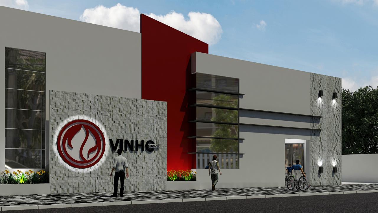 Retrofit do templo da Igreja Batista Vinho, com capacidade para 515 pessoas. A fachada apresenta o acesso na lateral e detalhes volumétricos que valorizam a logomarca da igreja. Projeto de arquitetura - 2014